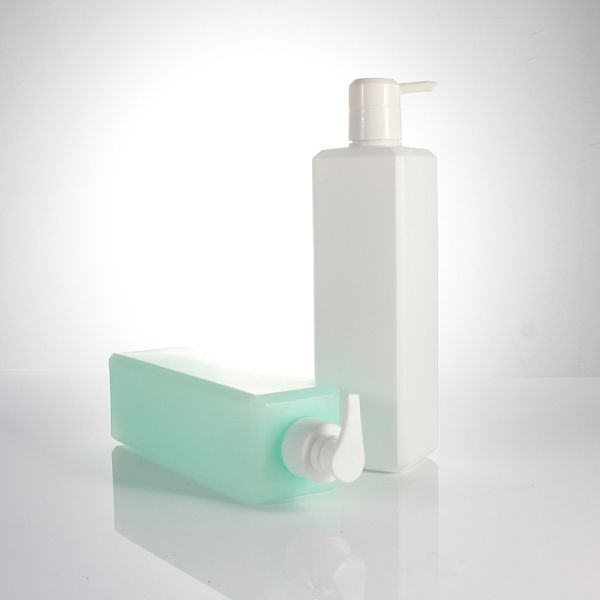 500ml White Green Square Shampoo Bottle HDPE Pump Plastic Bottle